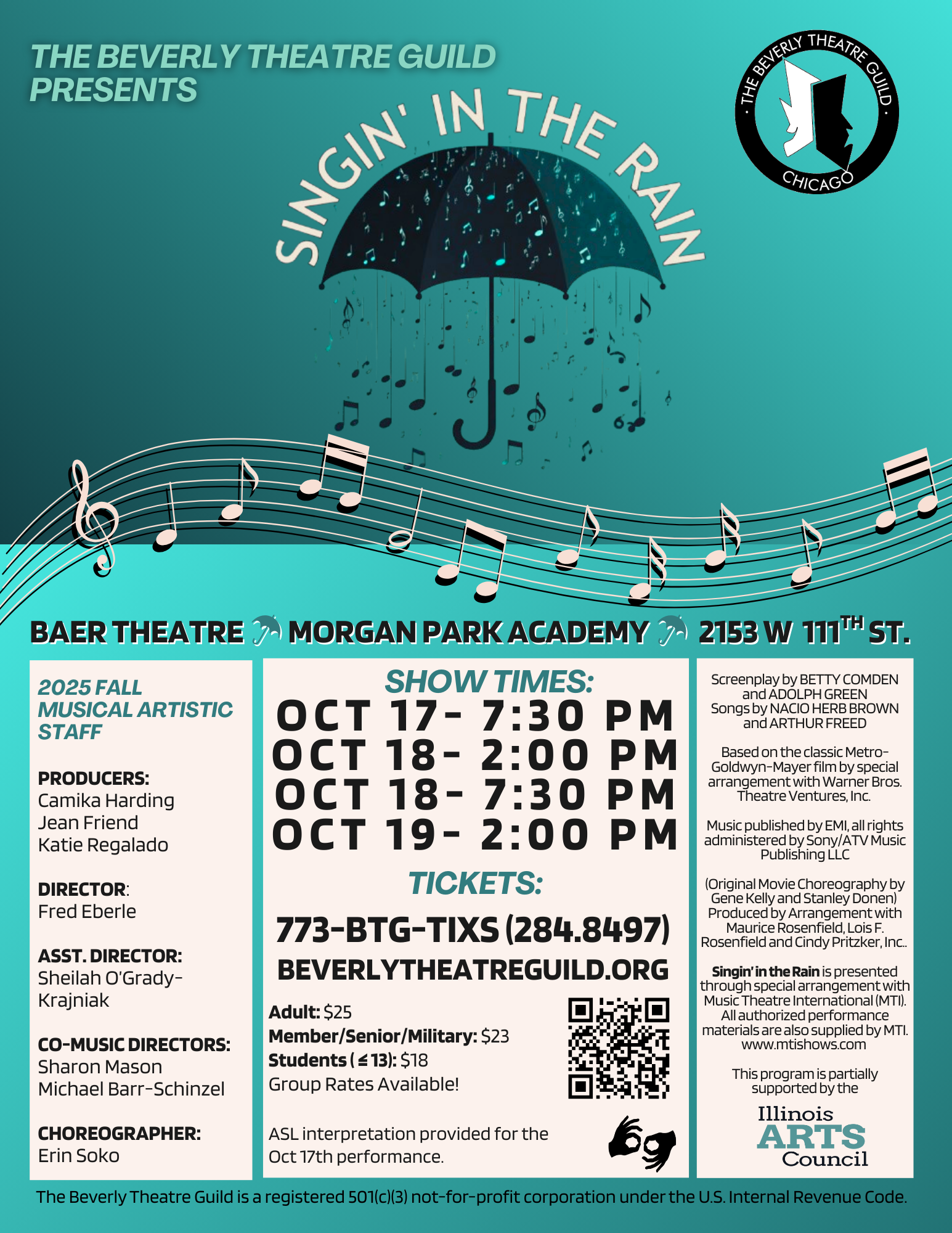 The Beverly Theatre Guild gratefully acknowledges a generous grant from the Illinois Creative Recovery Grant Program.